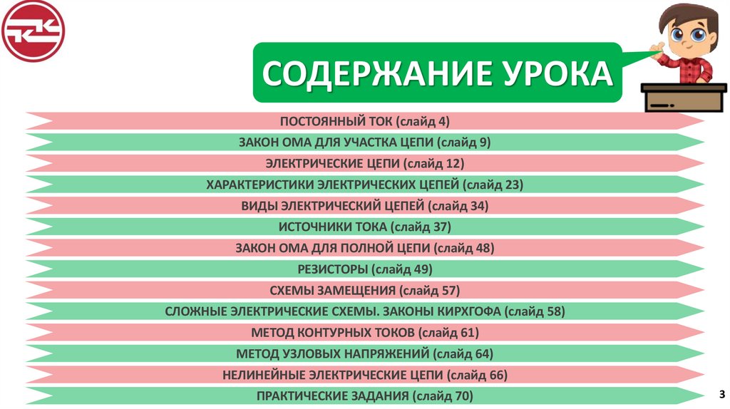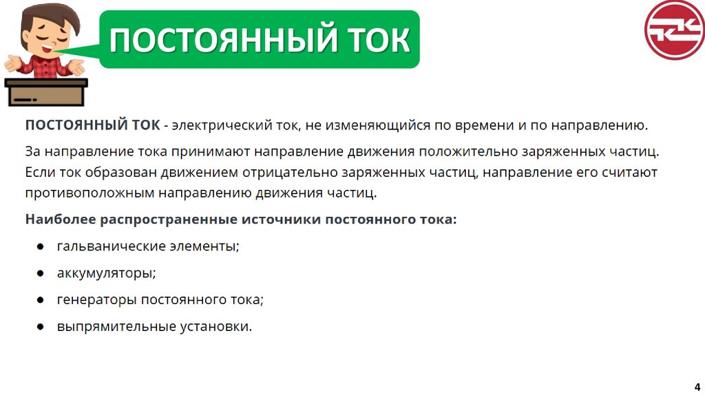 СОДЕРЖАНИЕ УРОКАПОСТОЯННЫЙ ТОК (слайд 4)