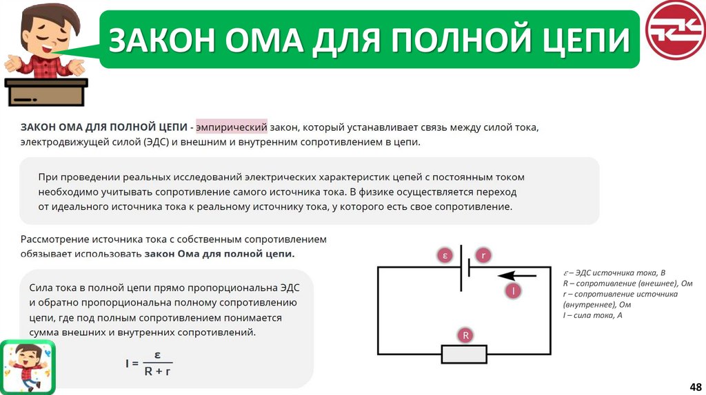 ЗАКОН ОМА ДЛЯ ПОЛНОЙ ЦЕПИ (слайд 48)
