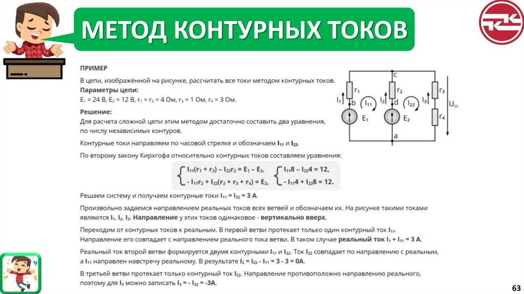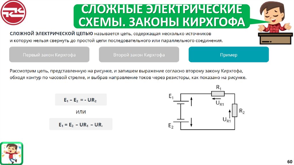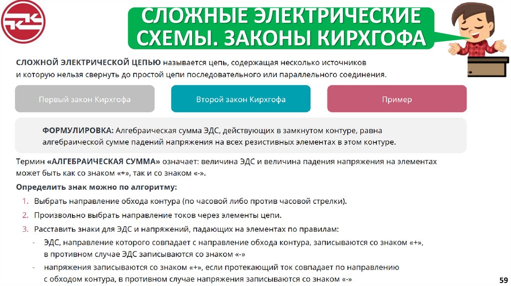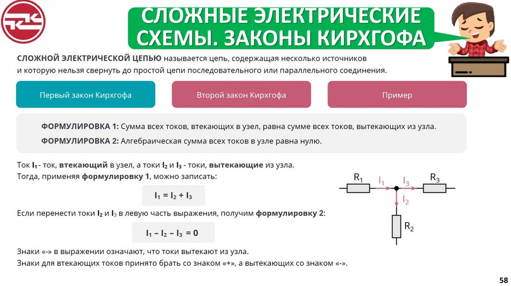 СЛОЖНЫЕ ЭЛЕКТРИЧЕСКИЕ СХЕМЫ. ЗАКОНЫ КИРХГОФА (слайд 58)