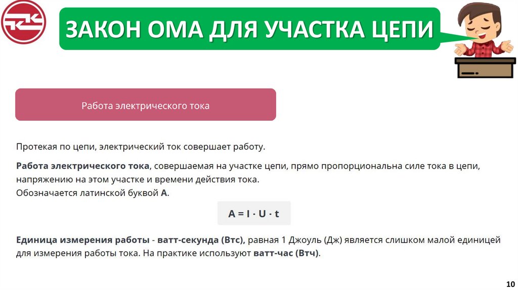ЗАКОН ОМА ДЛЯ УЧАСТКА ЦЕПИ10