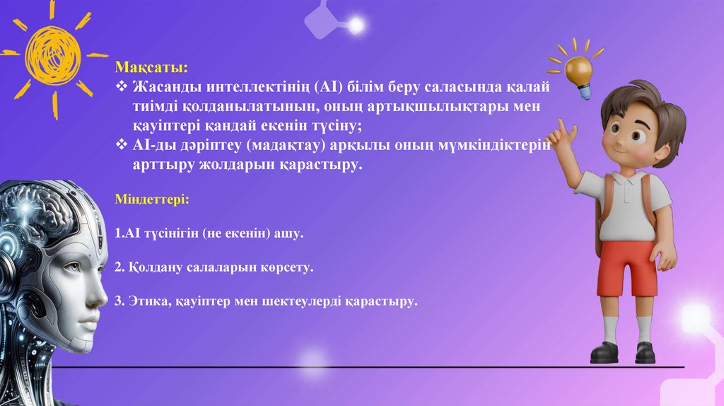 Мақсаты:Жасанды интеллектінің (AI) білім беру саласында қалай