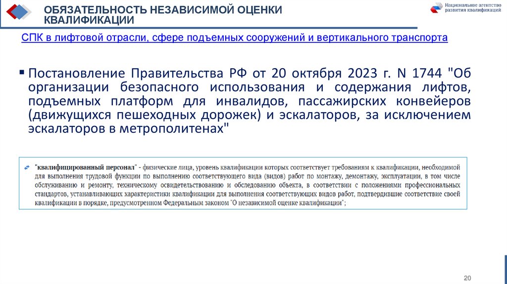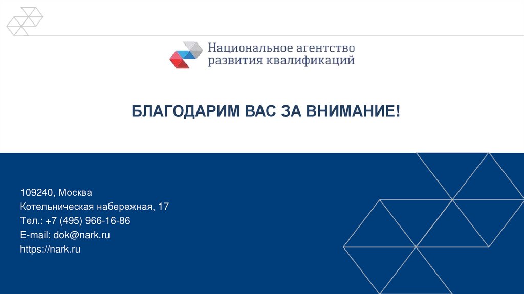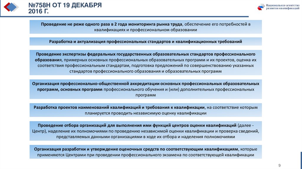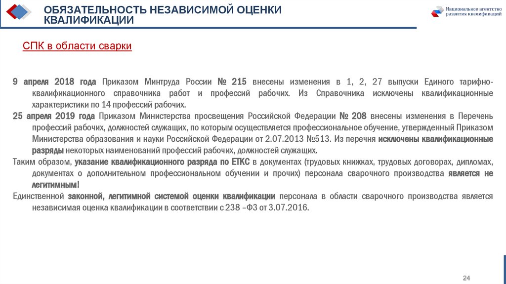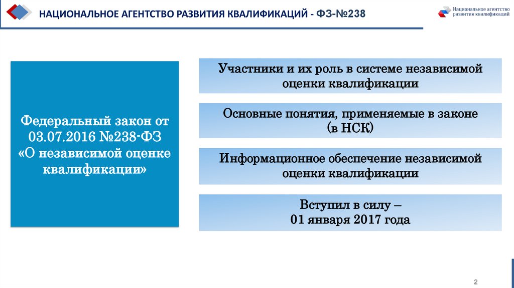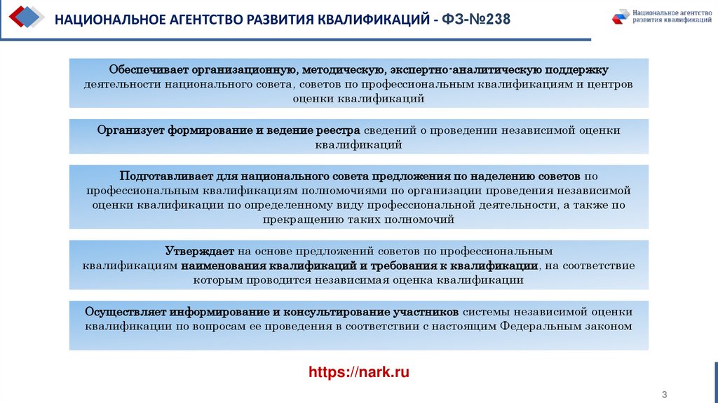 НАЦИОНАЛЬНОЕ АГЕНТСТВО РАЗВИТИЯ КВАЛИФИКАЦИЙ - ФЗ-№238Обеспечивает организационную, методическую, экспертно-аналитическую поддержку