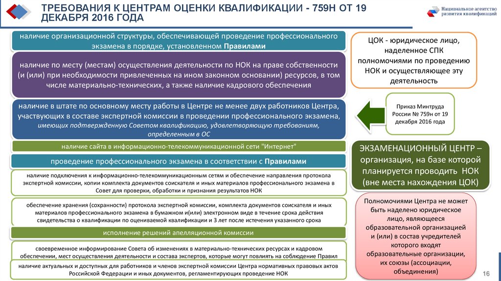 Приказ Министерства труда и социальной защиты Российской Федерации от 19 декабря 2016 г. № 759н «Об утверждении требований к центрам оценки квалификаций и Порядка отбора организаций для