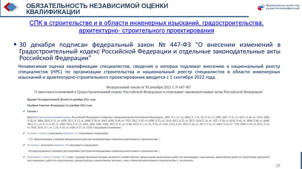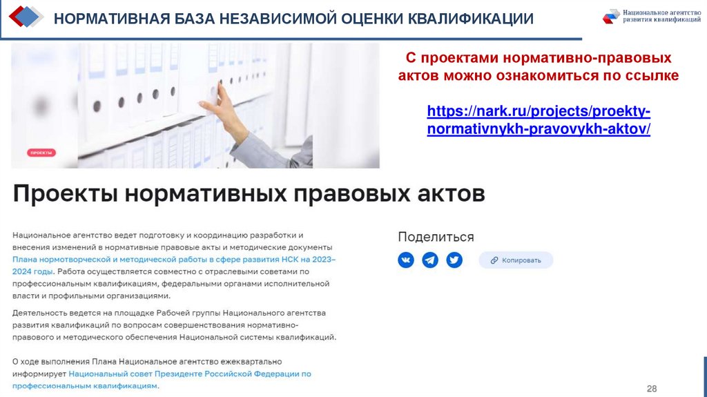 НОРМАТИВНАЯ БАЗА НЕЗАВИСИМОЙ ОЦЕНКИ КВАЛИФИКАЦИИС проектами нормативно-правовых