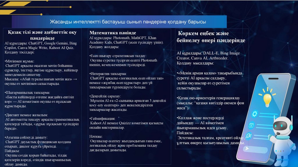 ЖИ пайдалану – оқыту процесін интерактивті, көрнекі және зерттеушілік сипатқа