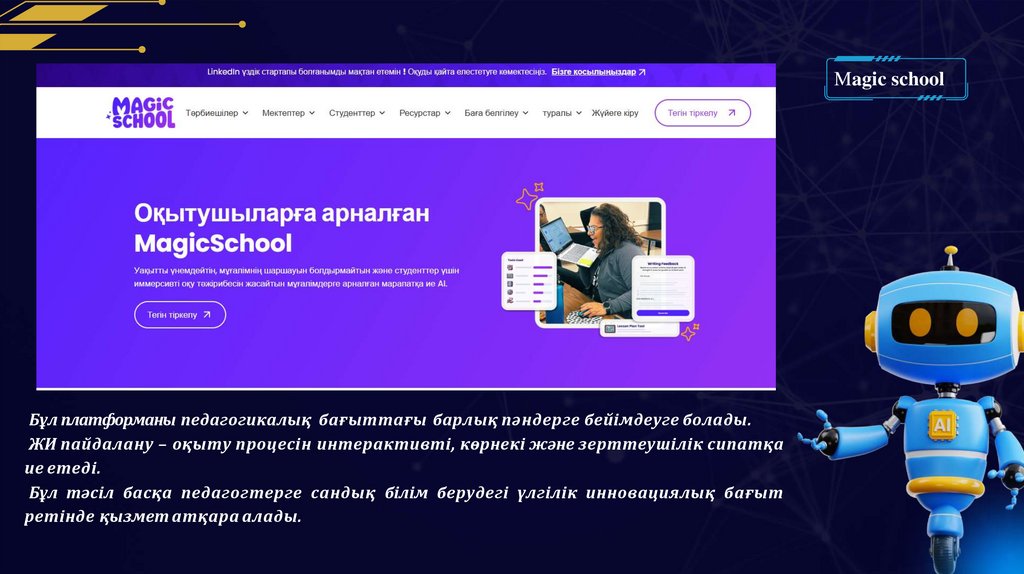 Magic schoolБұл платформаны педагогикалық бағыттағы барлық пәндерге бейімдеуге болады.