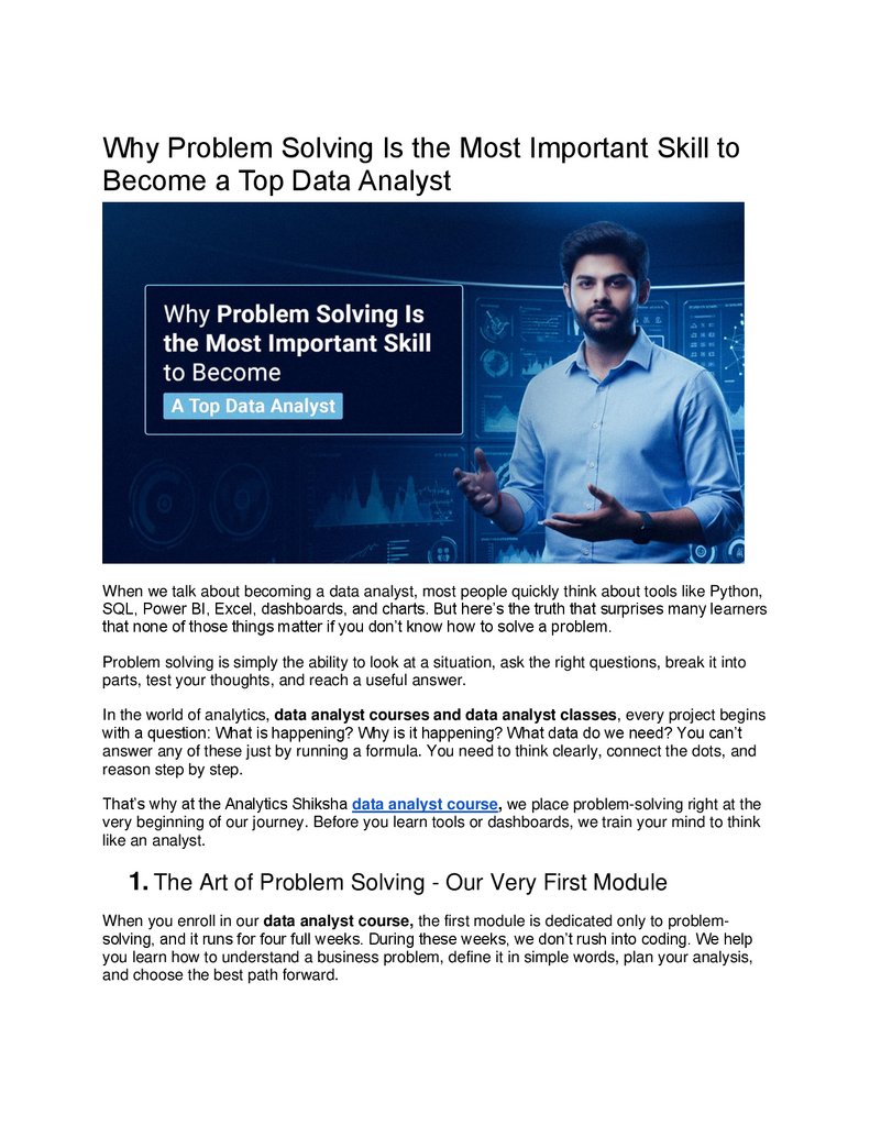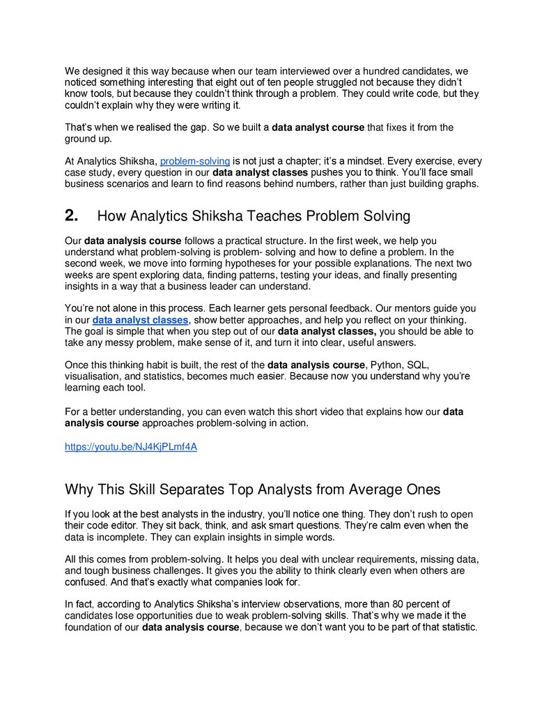 but problem-solving stays with you for life. At Analytics Shiksh’s data analysis course, we help
