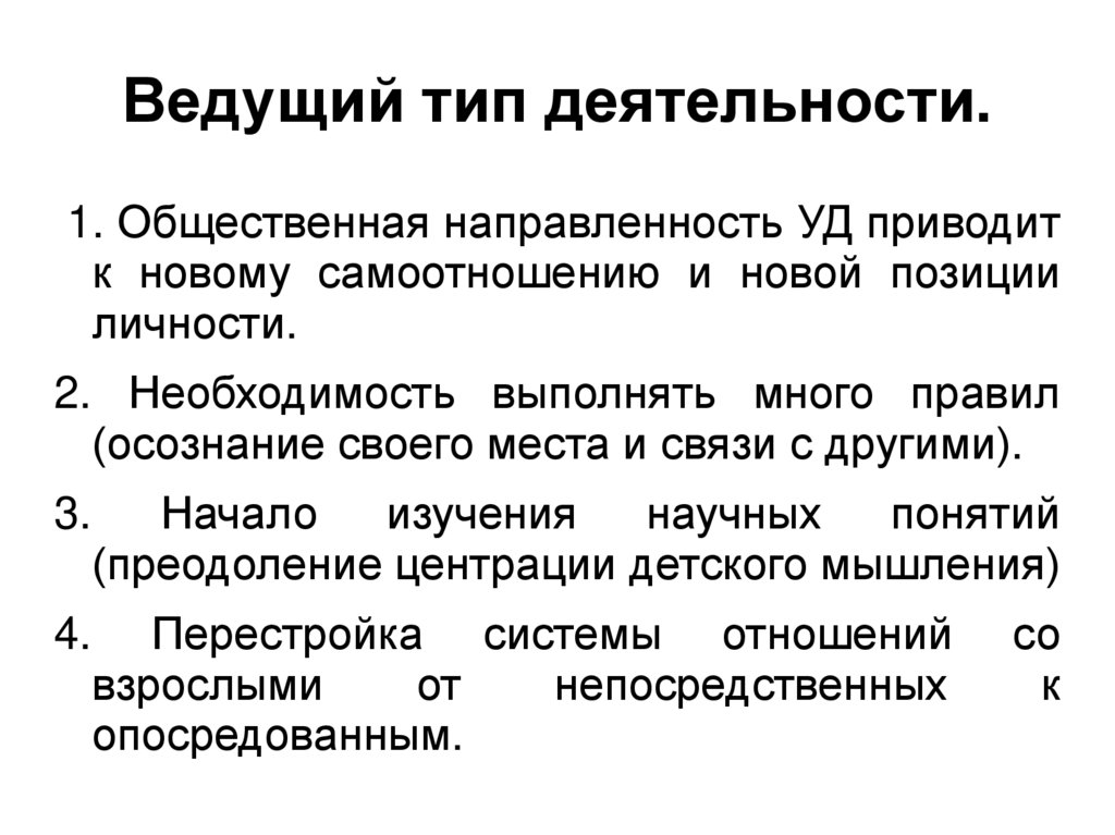 Ведущий тип деятельности.1. Общественная направленность УД приводит