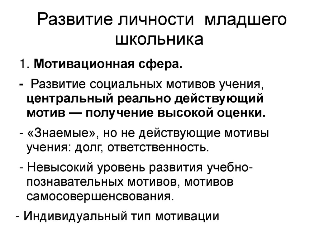 - Невысокий уровень развития учебнопознавательных мотивов, мотивов