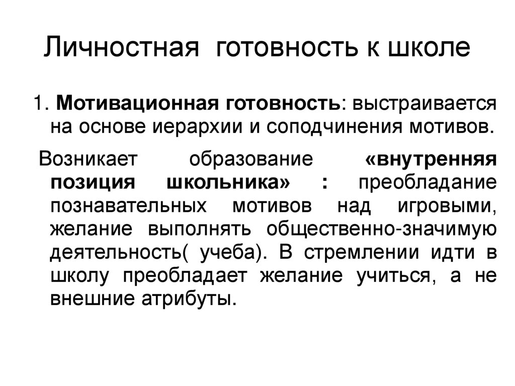 Личностная готовность к школе1. Мотивационная готовность: выстраивается