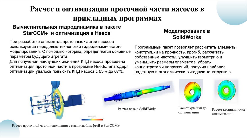 оптимизации удалось повысить КПД насоса с 63% до 67%.