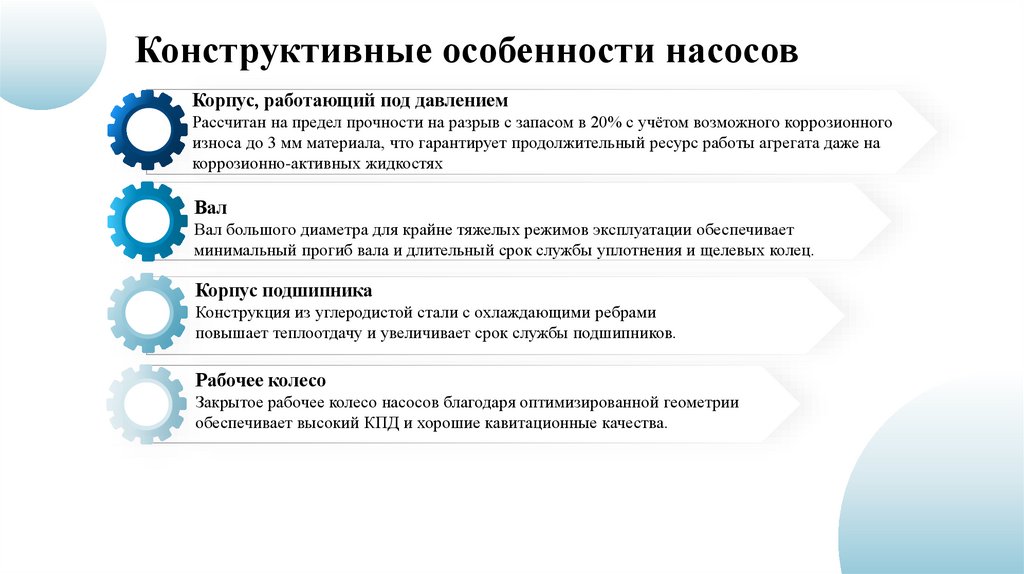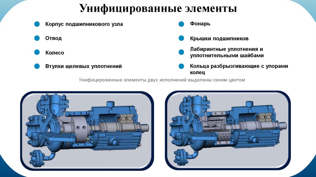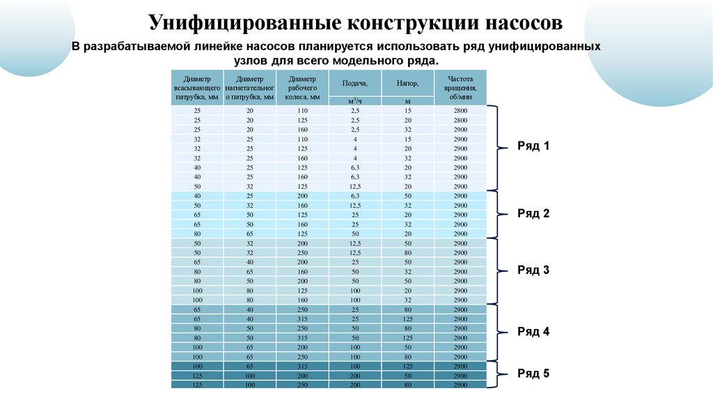 Унифицированные конструкции насосовВ разрабатываемой линейке насосов планируется использовать ряд унифицированных