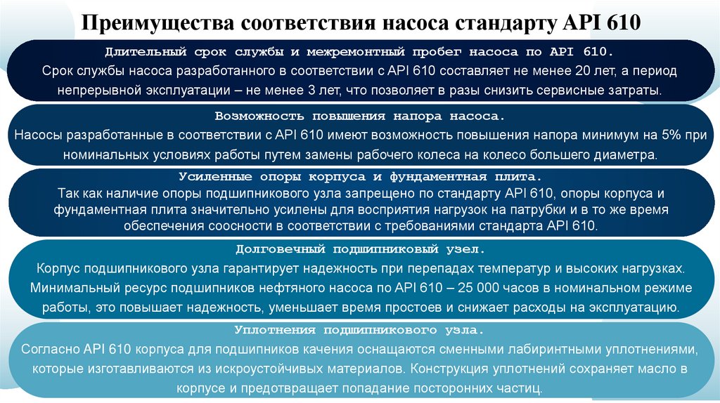 Преимущества соответствия насоса стандарту API 610Длительный срок службы и межремонтный пробег насоса по API 610.