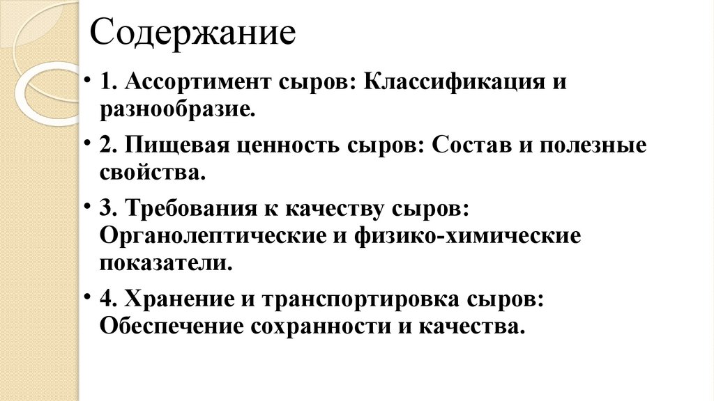 Содержание• 1. Ассортимент сыров: Классификация и