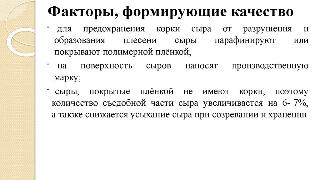 Факторы, формирующие качество- для предохранения корки сыра от разрушения и