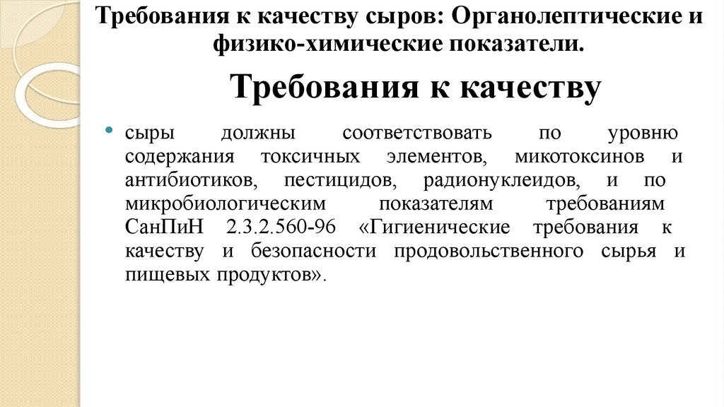 • 3. Требования к качеству сыров: