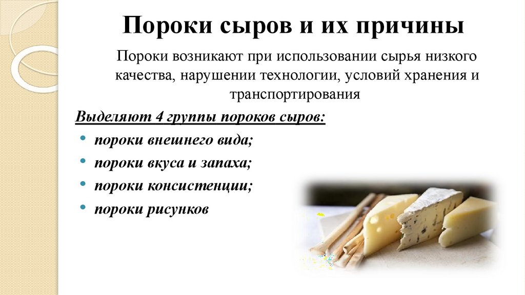 Пороки сыров и их причиныПороки возникают при использовании сырья низкого