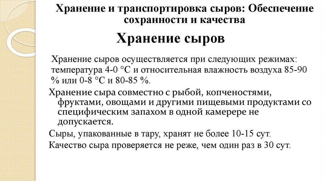 • 4. Хранение и транспортировка сыров: