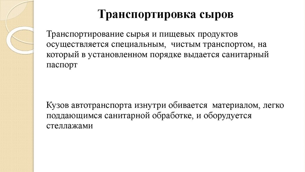 Транспортировка сыров иТранспортирование сырья и пищевых продуктов