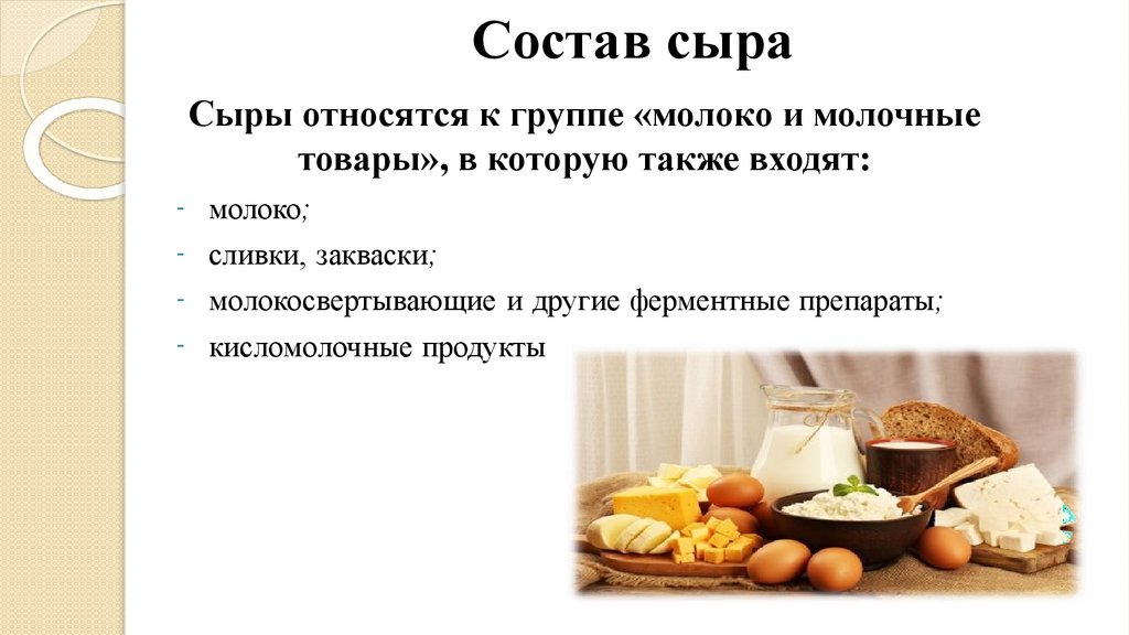 Состав сыраСыры относятся к группе «молоко и молочные