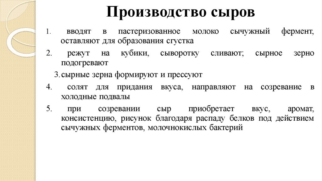 сычужных ферментов, молочнокислых бактерий