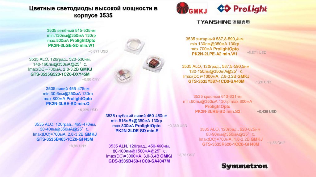 Цветные светодиоды высокой мощности вкорпусе 3535