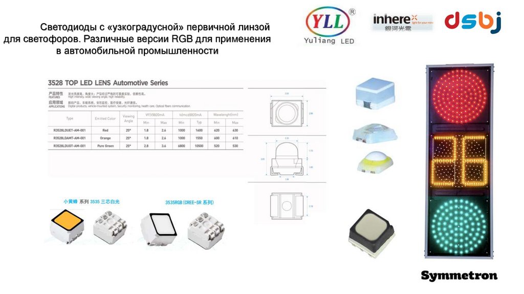 Светодиоды с «узкоградусной» первичной линзойдля светофоров. Различные версии RGB для применения