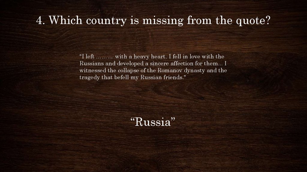 4. Which country is missing from the quote?"I left ……… with a heavy heart. I fell in love with the