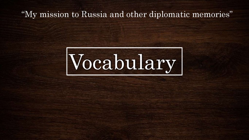 “My mission to Russia and other diplomatic memories”Vocabulary