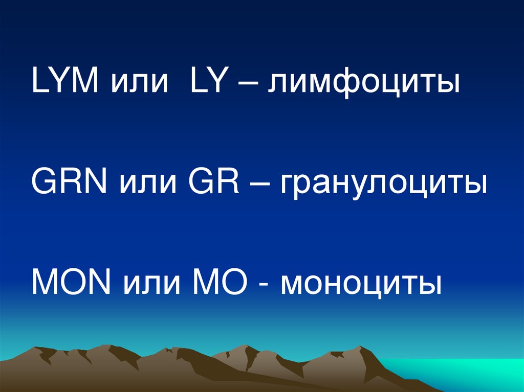 LYM или LY – лимфоцитыGRN или GR – гранулоциты