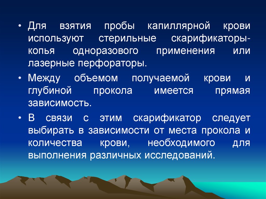 • Для взятия пробы капиллярной кровииспользуют стерильные скарификаторыкопья