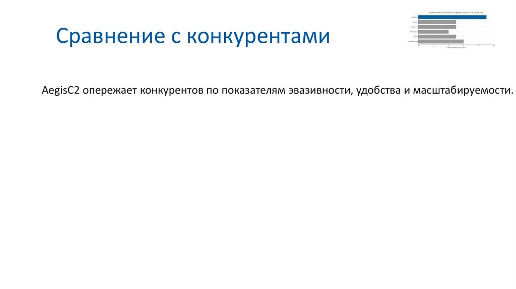 Сравнение с конкурентамиAegisC2 опережает конкурентов по показателям эвазивности, удобства и масштабируемости.