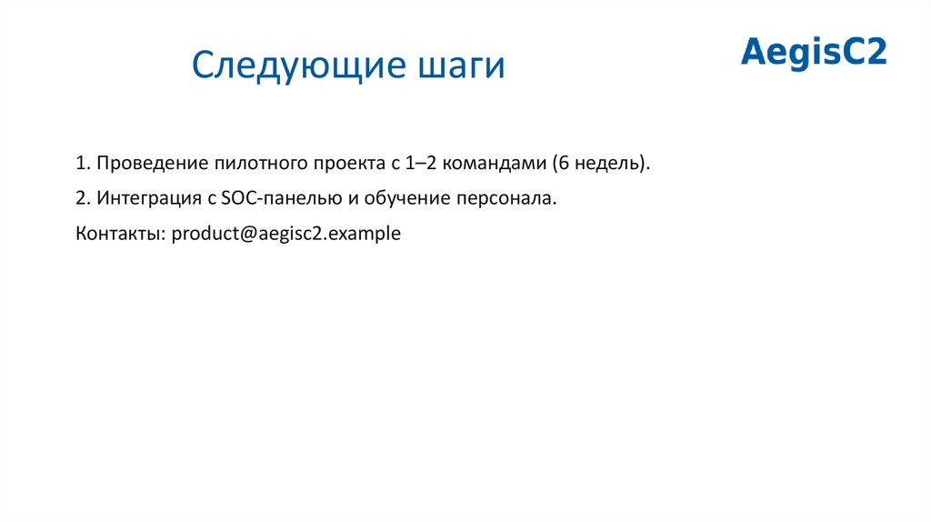 Следующие шаги1. Проведение пилотного проекта с 1–2 командами (6 недель).