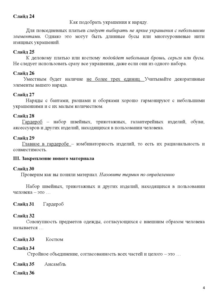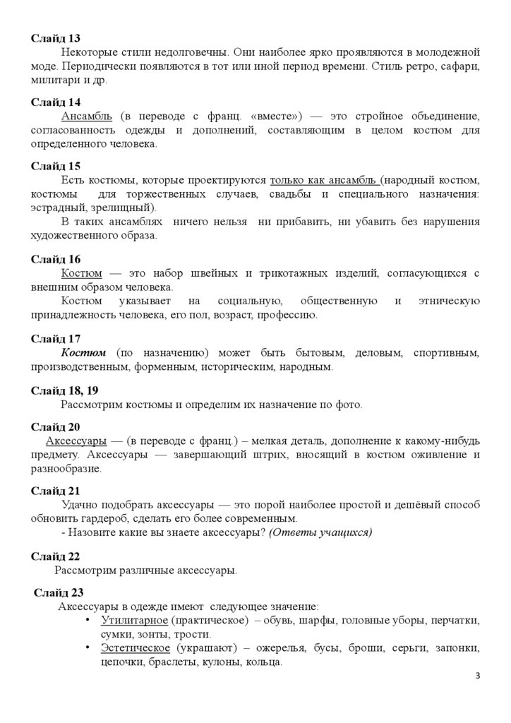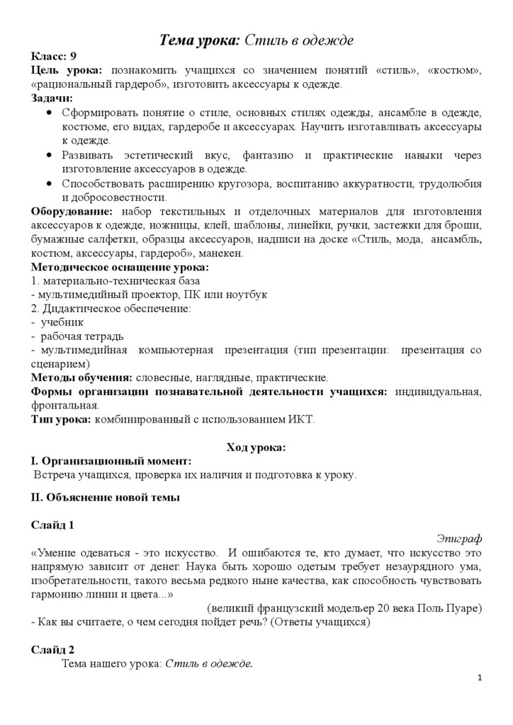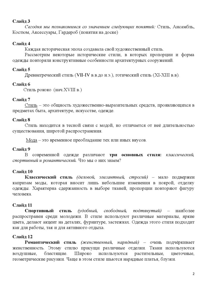 Сформировать понятие о стиле, основных стилях одежды, ансамбле в одежде,