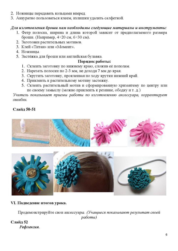 Учитель показывает приемы работы по изготовлению аксессуара, корректирует