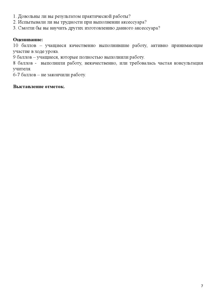 1. Довольны ли вы результатом практической работы?2. Испытывали ли вы трудности при выполнении аксессуара?