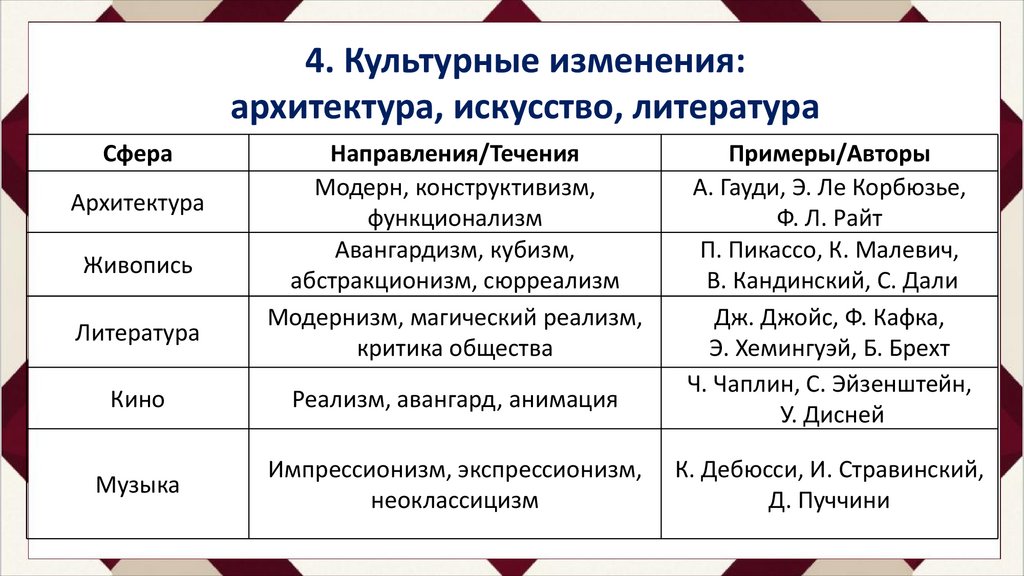 Культура → Поиск новых форм (авангард) + Массовизация (кино, спорт)