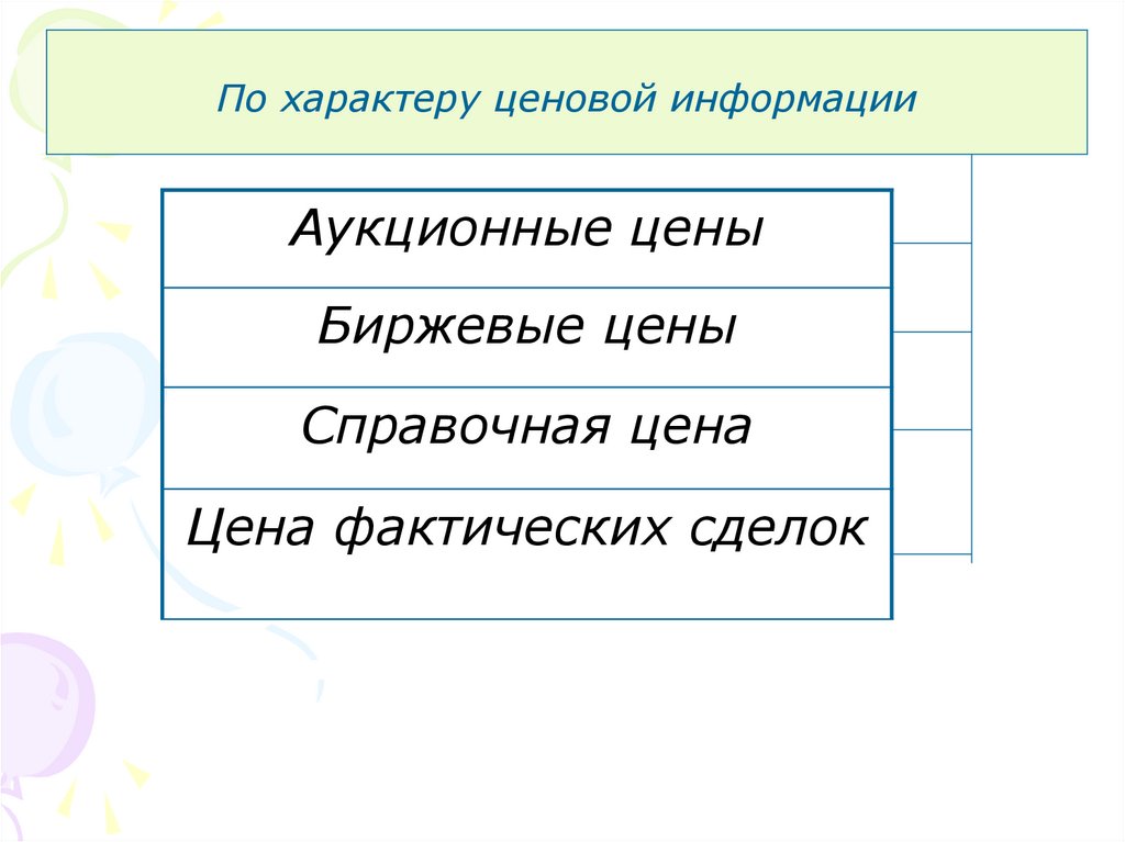 По характеру ценовой информацииАукционные цены