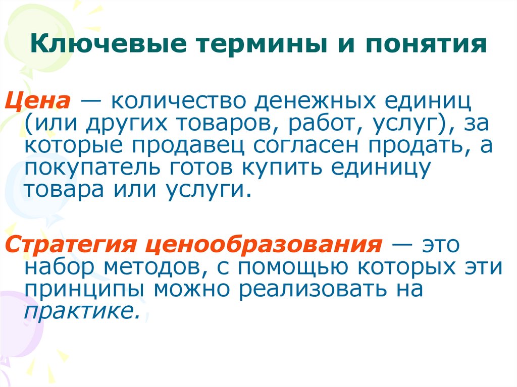 Ключевые термины и понятияЦена — количество денежных единиц