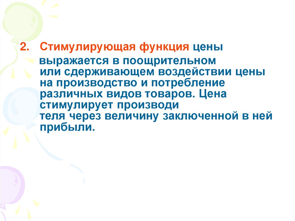 2. Стимулирующая функция ценывыражается в поощрительном