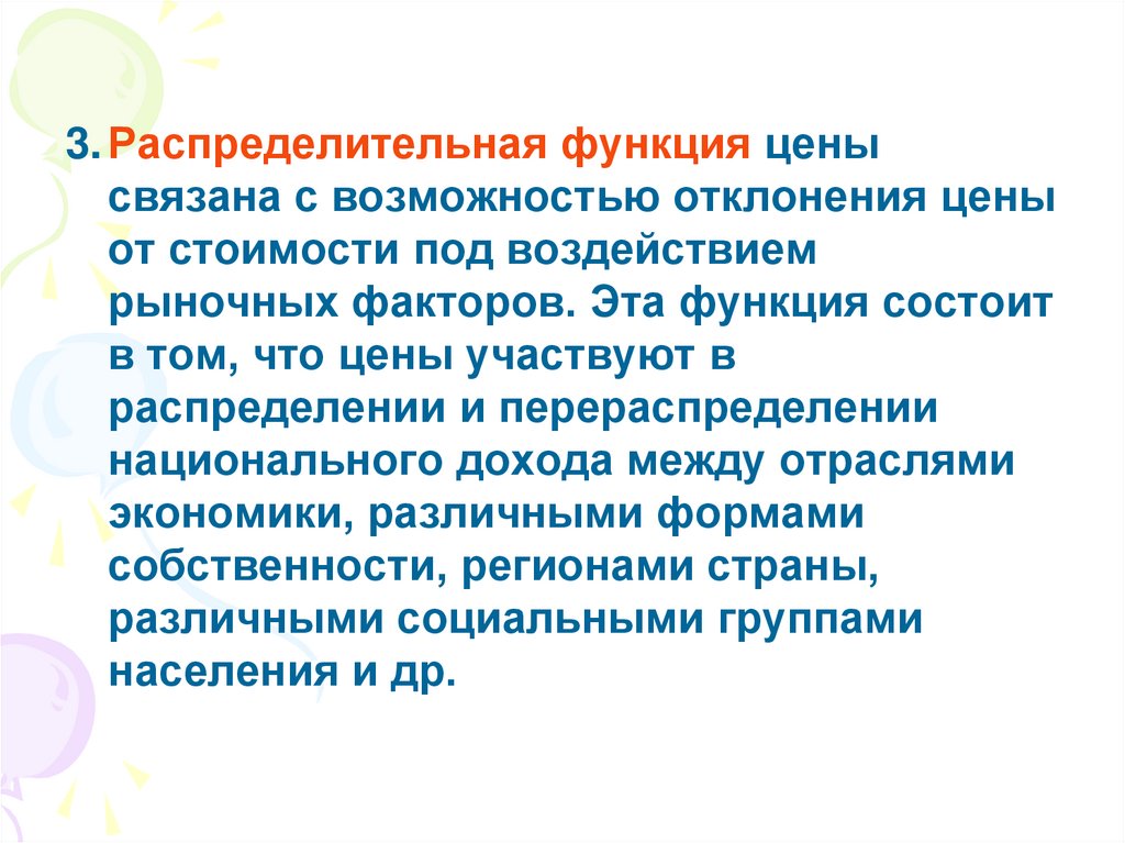 3. Распределительная функция ценысвязана с возможностью отклонения цены