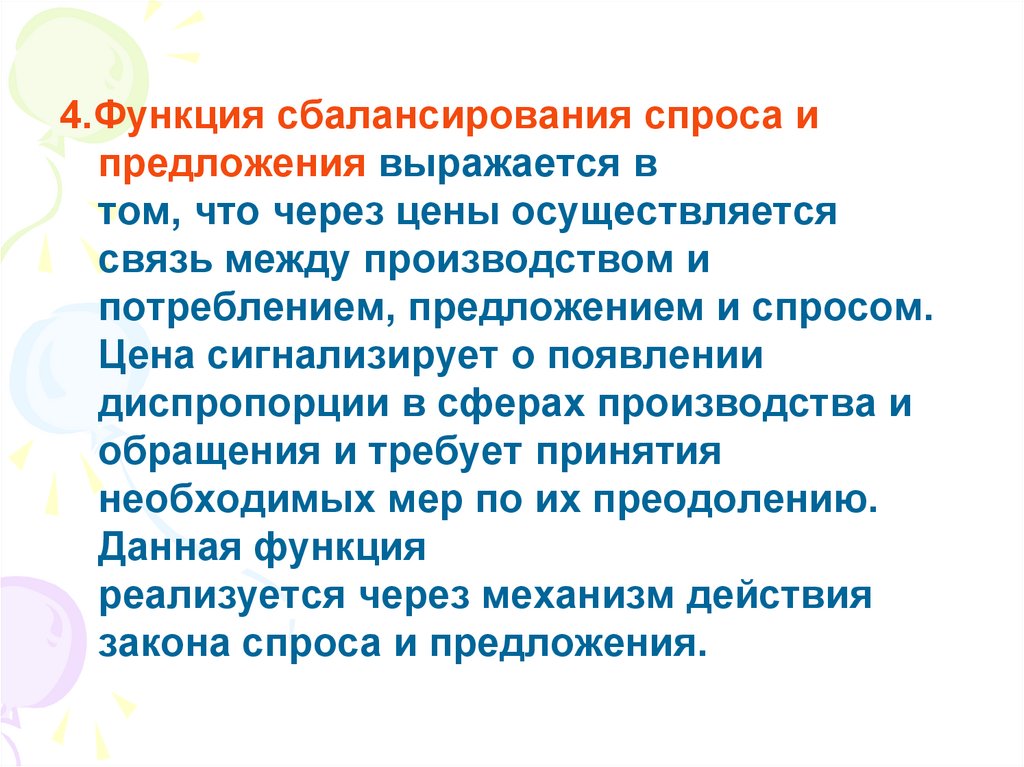 4.Функция сбалансирования спроса ипредложения выражается в