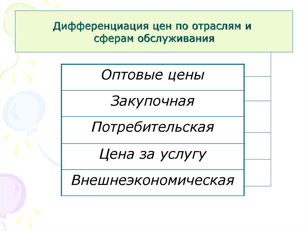 Дифференциация цен по отраслям исферам обслуживания