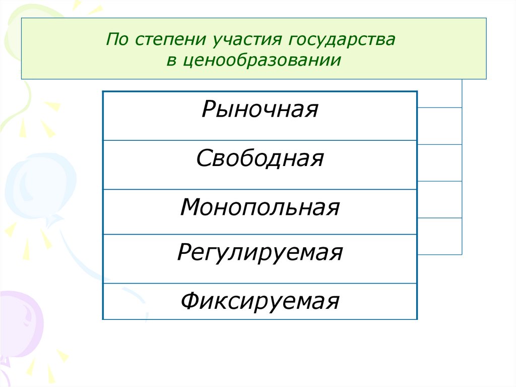 По степени участия государствав ценообразовании