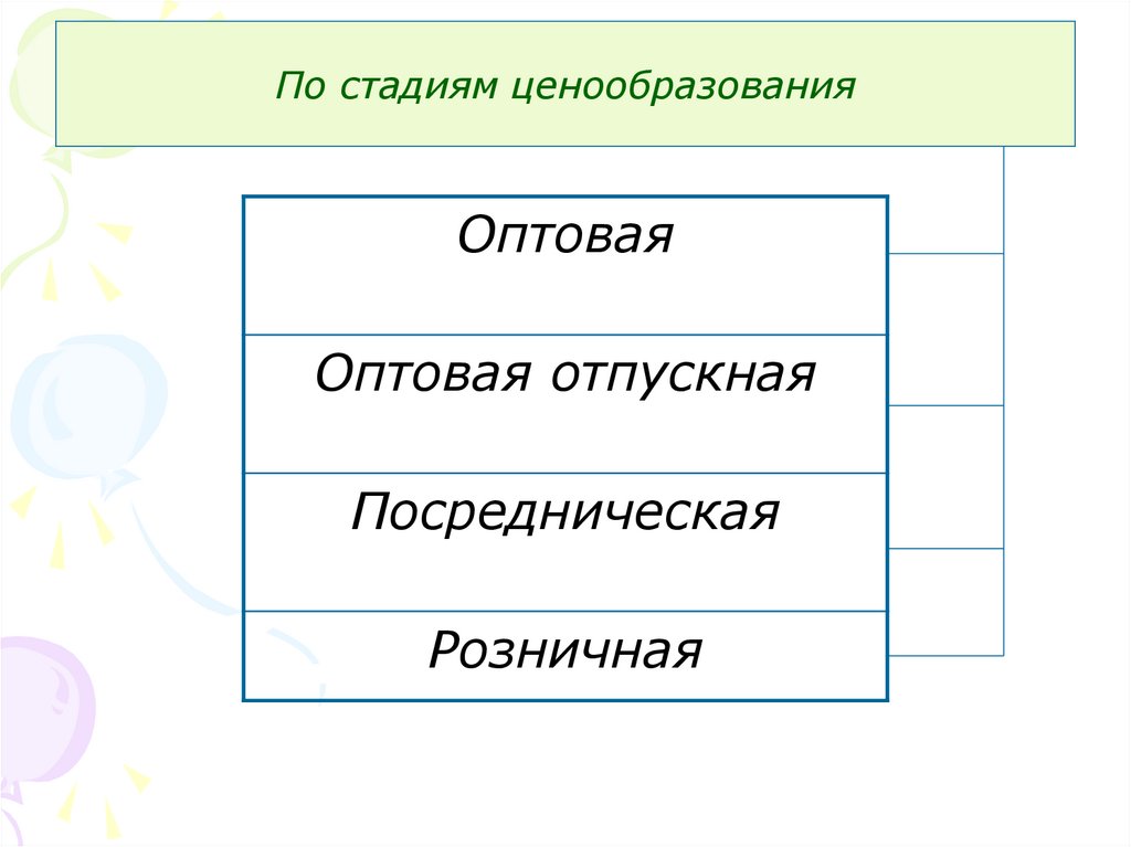 По стадиям ценообразованияОптовая