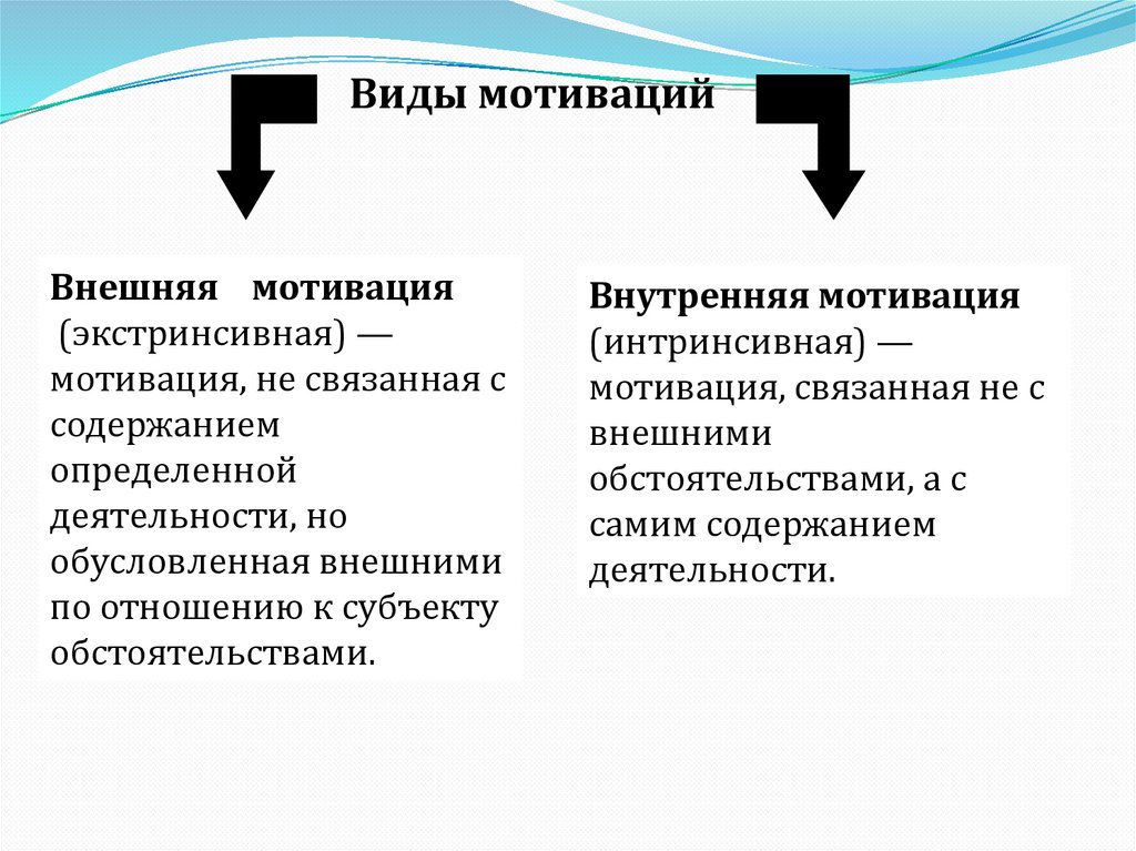 Виды мотивацийВнешняя мотивация