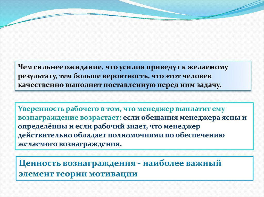 вознаграждение возрастает: если обещания менеджера ясны и