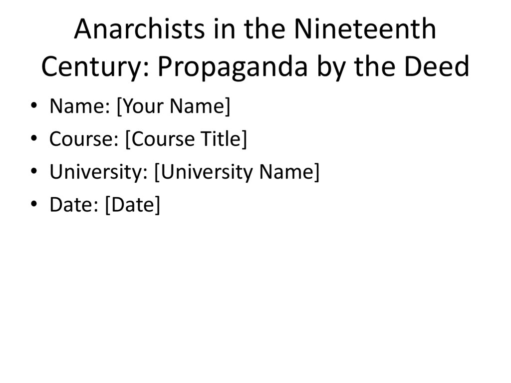 Anarchists in the NineteenthCentury: Propaganda by the Deed