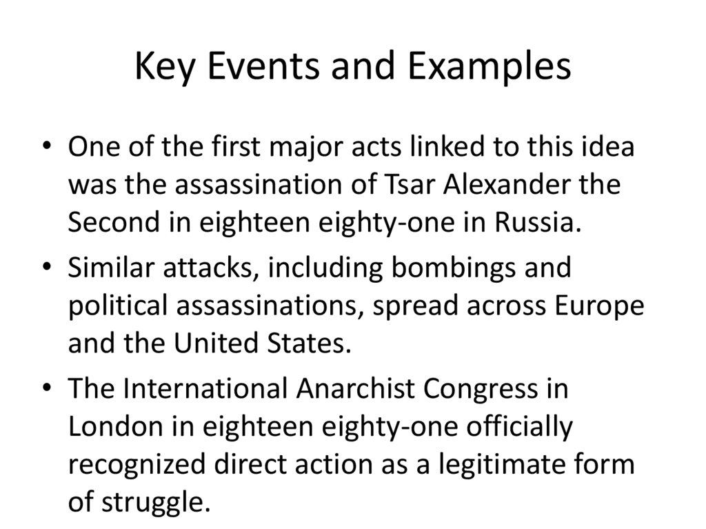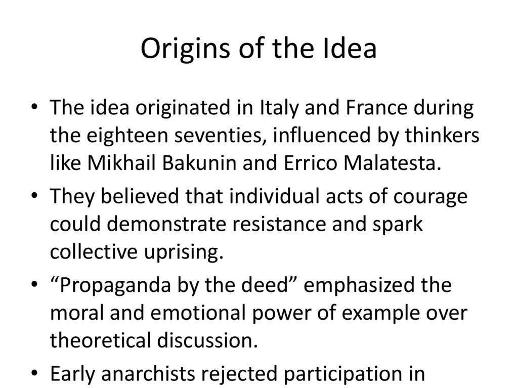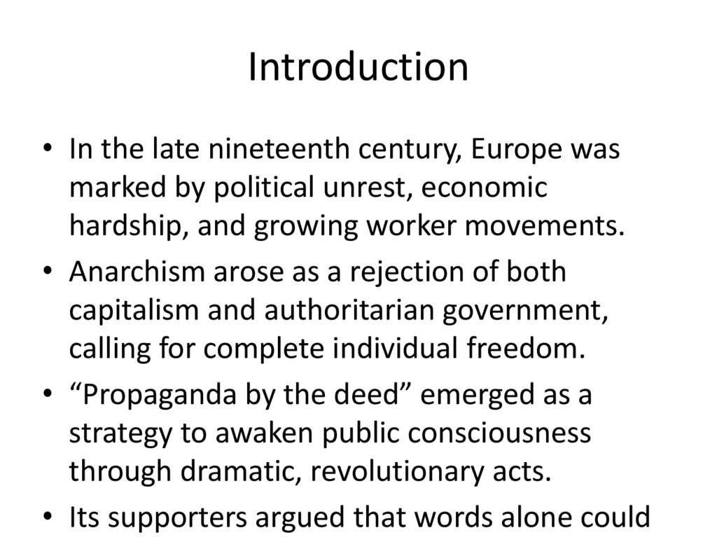 • “Propaganda by the deed” emerged as a