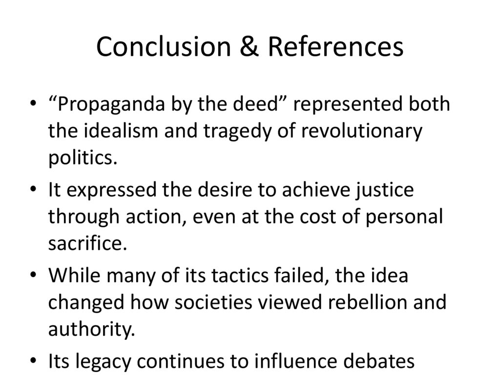 Conclusion & References• “Propaganda by the deed” represented both